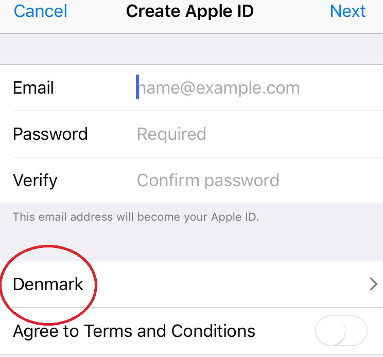 2- Nel Paese scegliere e selezionare Danimarca e premere Fatto. Accettare i termini e le condizioni.