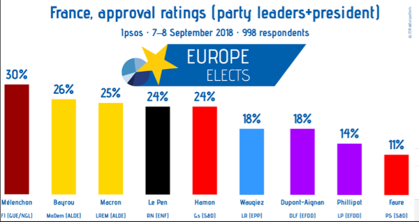 Jean-Luc Mélenchon viene visto al momento, insieme all’inglese Jeremy Corbyn, come esempio per la sinistra europea: non è un caso che in recente sondaggio, il leader della sinistra d’Oltralpe è stato indicato come il politico più apprezzato.
