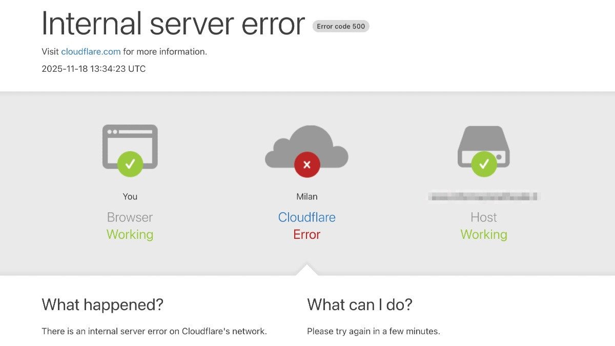 Cloudflare è di nuovo in down: problemi al pannello e alle API mandano offline un’ampia lista di servizi, da X a Spotify, Canva, Fortnite e persino DownDetector, causando disservizi globali.