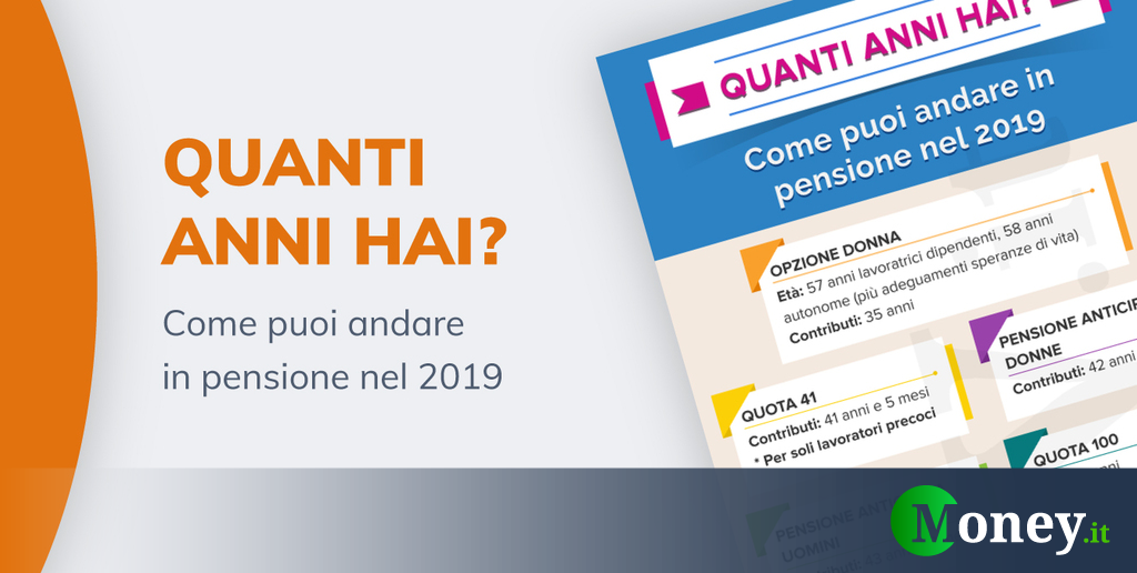 Per districarsi al meglio tra le varie opzioni per il pensionamento e capire qual è la migliore in base alla vostra età - e alla posizione contributiva - quindi, abbiamo deciso di realizzare questa infografica dove nella prima parte trovate tutte le strade possibili per accedere alla pensione, con i relativi requisiti, mentre in quella successiva a seconda della fascia d’età abbiamo indicato le soluzioni per il pensionamento.