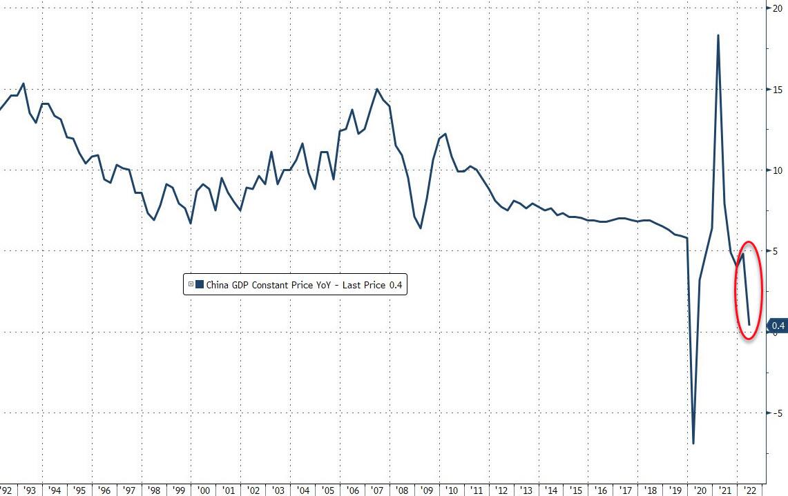 il Pil cinese del secondo trimestre è precipitato a +0,4% dal +4,8% del primo e contro l’aspettativa dell’1,2% del panel di economisti sondati da Reuters. Una lettura al minimo da due anni, ovvero da quando il Covid impose il regime di pandemia globale. E proprio il ritorno dei contagi e le conseguenti chiusure di attività produttive hanno operato da driver in negativo di quello che appare il peggior dato di crescita trimestrale della Cina nell’era moderna.