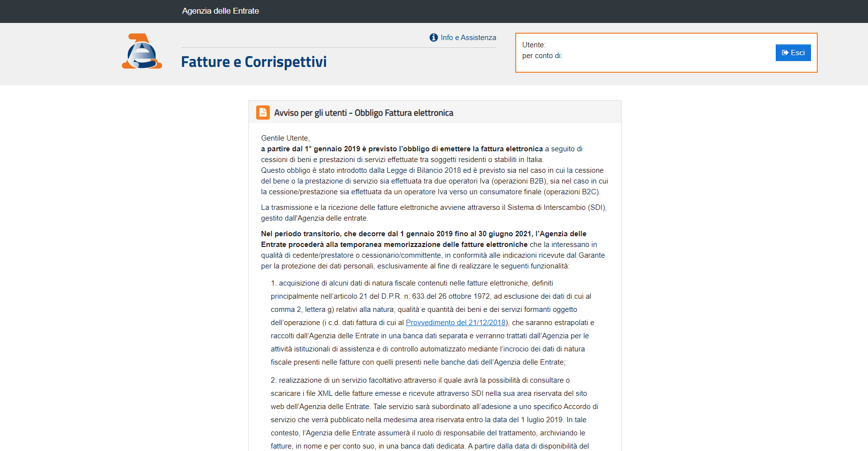 Ad attendere il richiedente (che sia uno dei professionisti beneficiari del contributo, il titolare di un’azienda o un intermediario abilitato) c’è un avviso che riguarda lo strumento di consultazione delle fatture elettroniche.