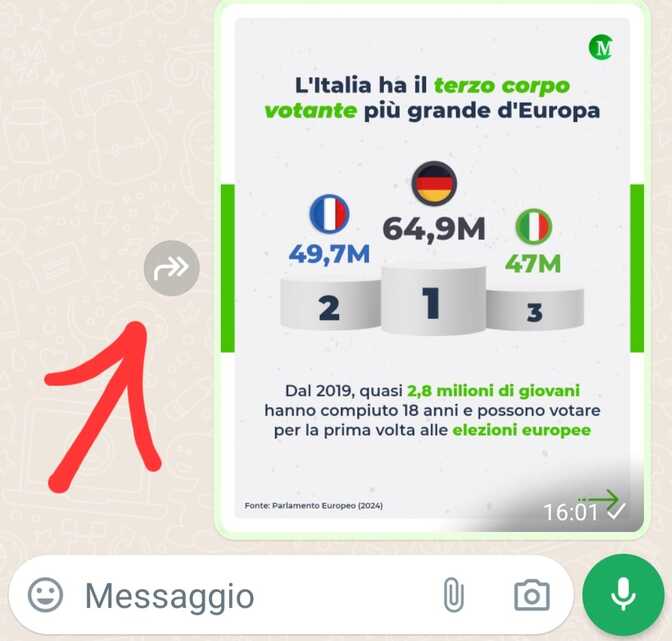 Questa icona non appare in tutti i messaggi presenti in chat, ma solo sui contenuti in esse condivisi. Quindi non è presente sui normali messaggi di testo, né accanto a emoji o emoticon.
