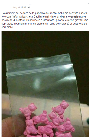 Questo naturalmente non significa che sul mercato non ci siano delle droghe a forma di orsetto rosa; le pasticche di ecstasy vengono infatti prodotte nelle più svariate forme, ma non vengono offerte di certo ai bambini delle elementari.