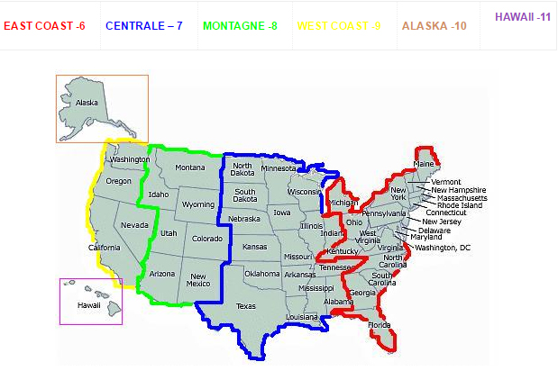 Ad esempio, quando da noi sono le 22:00, negli USA ci sono i seguenti orari: