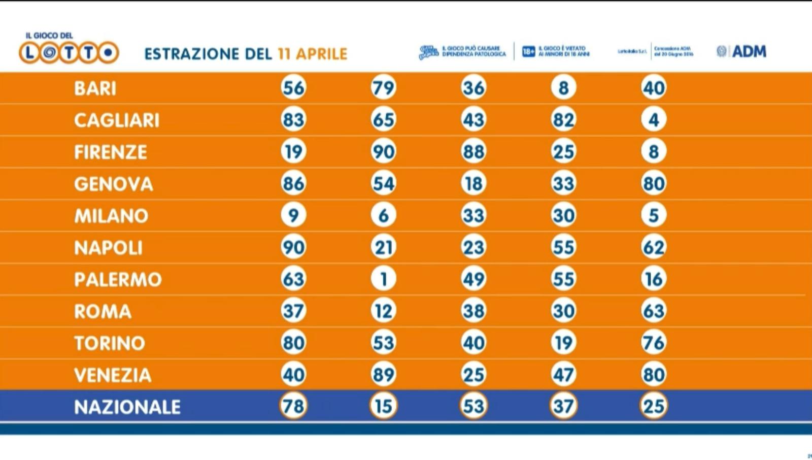 Oggi giovedì 11 aprile nuovo appuntamento con le estrazioni di Lotto e Superenalotto. Ecco i numeri vincenti.