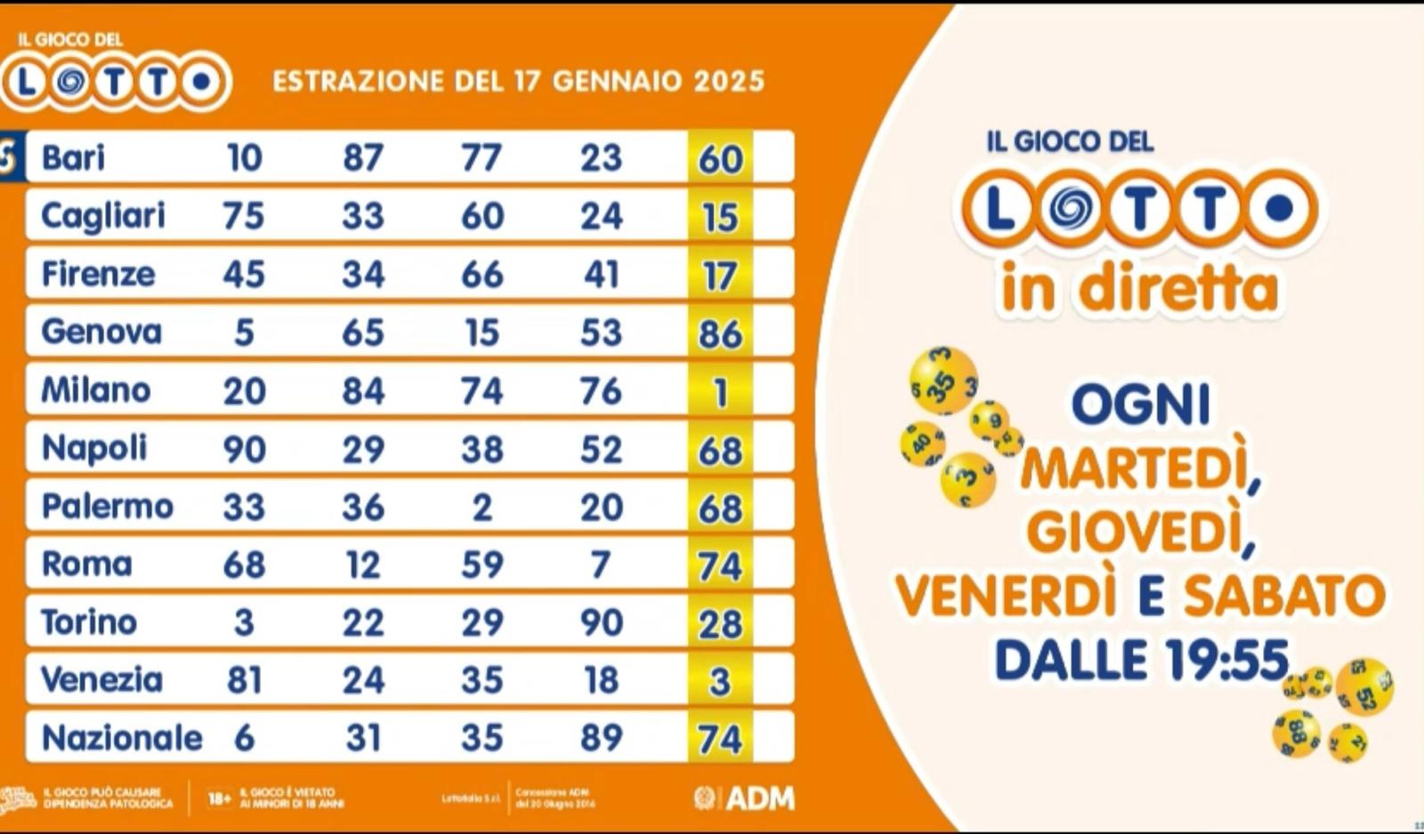 Estrazioni Lotto, SuperEnalotto, oggi venerdì 17 gennaio