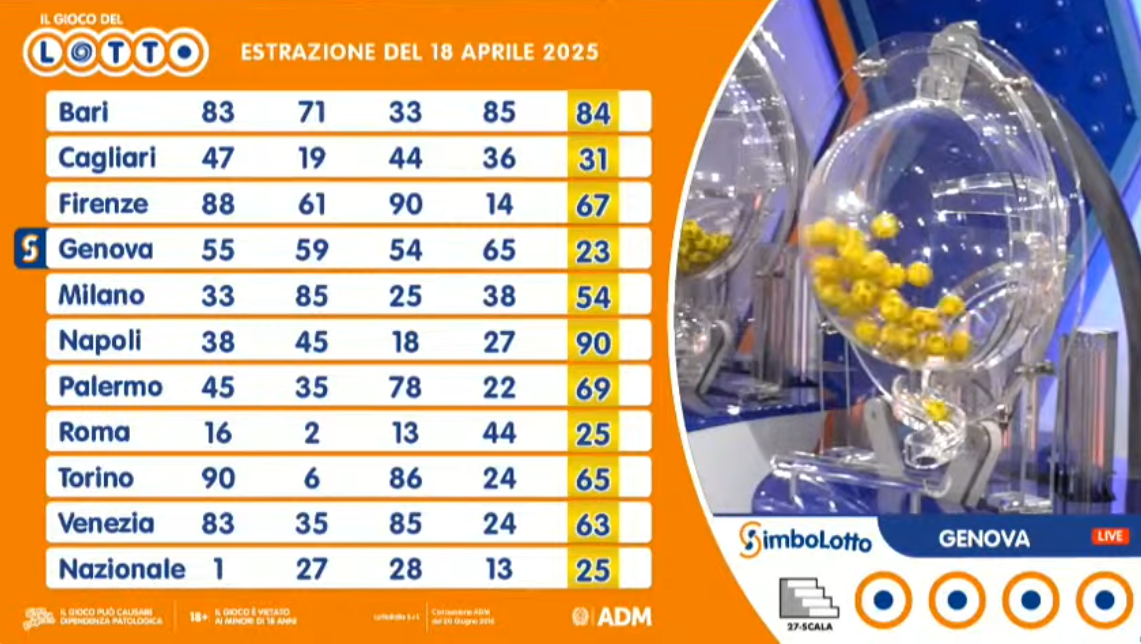 Le estrazioni del Lotto e del Superenalotto di oggi, venerdì 18 aprile. In diretta su questa pagina tutti i numeri vincenti.