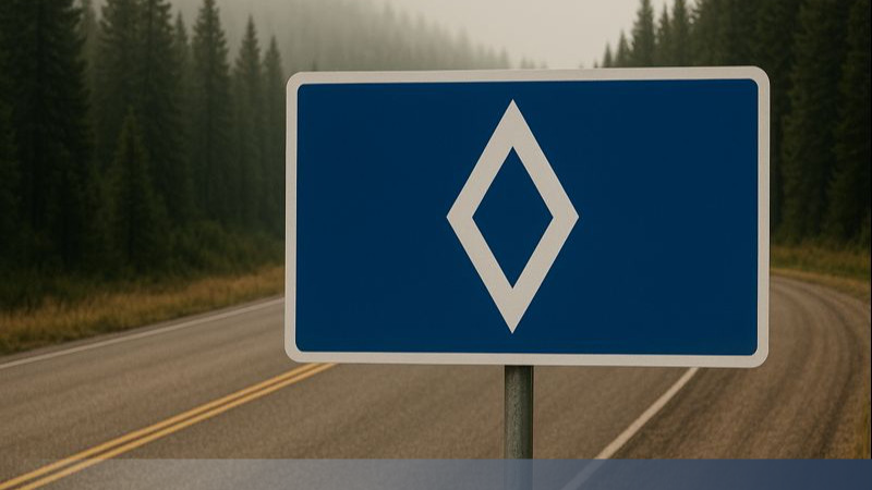 In Europa è arrivato un nuovo cartello stradale, un rombo bianco su sfondo blu che all’apparenza non rimanda ad alcun significato intuitivo. Per gli italiani è stranissimo, non soltanto perché è diverso da qualsiasi altro cartello previsto dal nostro Codice della strada ma anche perché non si è mai visto nel Belpaese. Presumibilmente è solo questione di tempo, visto che dai lontani Stati Uniti questo nuovo cartello si sta già diffondendo ampiamente in vari Paesi europei.