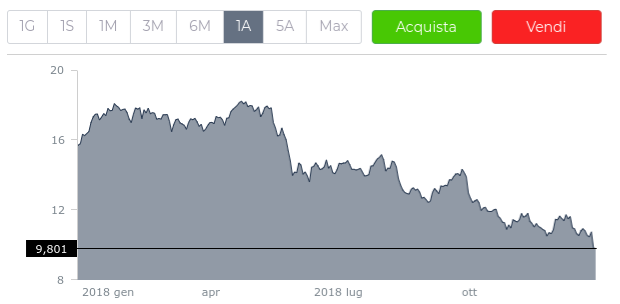 (L’andamento del titolo dall’inizio dell’anno ad oggi, arco di tempo in cui la banca ha perso circa il 37% in Borsa)