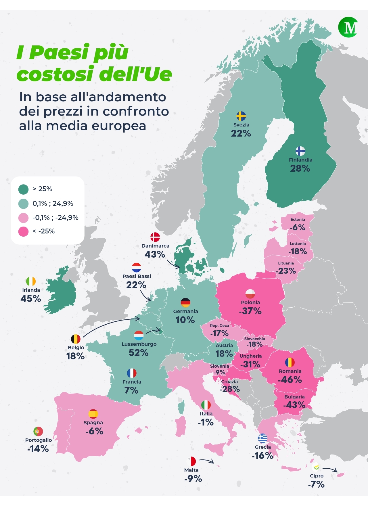 Di seguito la classifica completa, con la posizione dell’Italia rispetto alle altre nazioni europee: quanto è costoso il nostro Paese?