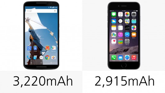 Batteria da 2,915 mAh per iPhone 6 Plus, 3,220 mAh per Nexus 6. Mentre iPhone 6 Plus ha superato tutti i test di ottimizzazione del ciclo di autonomia, è ancora presto per parlare delle prestazioni effettive di Nexus 6, la cui funzionalità di ricarica rapida supportata promette però di ricaricare il dispositivo per ore di autonomia in soli 15 minuti.