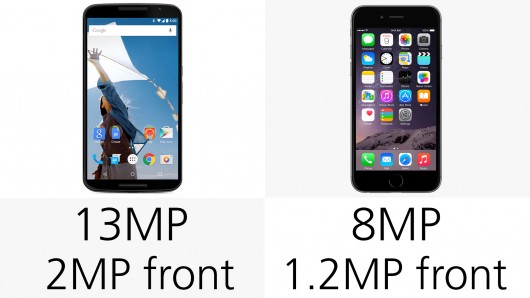 Nexus 6 ha una fotocamera principale da 13 megapixel f/2.2 e una frontale da 2 megapixel. iPhone 6 Plus giunge con fotocamera principale da 8 megapixel f/2.0 e 1.2 megapixel per quella frontale. Entrambi i dispositivi supportano tecnologia OIS per la stabilizzazione d’immagine e sono dotati di flash dual LED.
