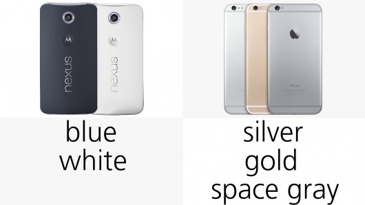 iPhone 6 Plus col suo design elegante e interamente in alluminio rimane il modello da battere in termini di qualità dei materiali. In maniera simile a quanto visto col Samsung Galaxy Note 4 Nexus 6 adotta ancora la plastica per il suo hardware, con finiture in metallo che ne esaltano il design. Nexus 6 giunge in due semplici colorazioni, bianco e nero. Apple iPhone 6 Plus nei suoi ormai classici silver, gold e space grey.