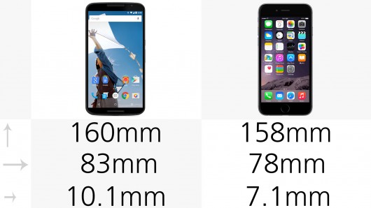Nonostante dalle dimensioni di appena qualche millimetro superiori rispetto a quelle di iPhone 6 Plus, Google e Motorola sono riuscite a installare nel loro Nexus 6 uno schermo di ben 5.96 pollici contro i 5.5 del concorrente Apple. Col suo 18 percento di grandezza in più rispetto a iPhone 6 Plus, il Nexus 6 detiene il record di schermo dalle maggiori dimensioni tra tutti i dispositivi sul mercato che non rientrano nella categoria di tablet puri.