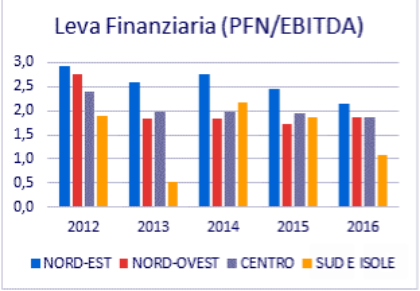Quello che si può evidenziare è che dal 2012 al 2016 gli investimenti programmati hanno fatto registrare un progressivo aumento, evidente dall’uso della leva tariffaria che ha generato una crescita del margine operativo lordo del 12,9% CAGR e del margine di profitto sui ricavi del 7,3% CAGR. Aumenta invece del 7,6% CAGR il debito lordo, ma aumentano anche le liquidità disponibili del 30,1% CAGR.