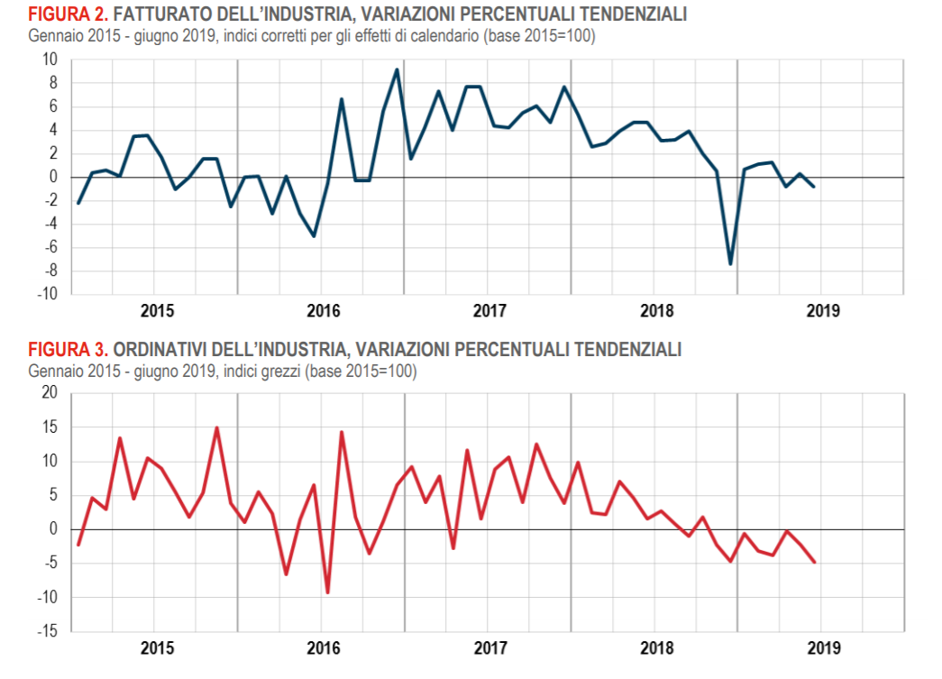 Industria Italia: il fatturato e gli ordinativi di giugno 2019 hanno rivisto negativamente le attese del mercato. I dettagli