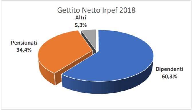 La loro elaborazione ha portato alle seguenti conclusioni: l’Irpef viene pagata per il 94,7% da dipendenti e pensionati, mentre solo il 5,3% è versato da “altre tipologie di contribuenti”.