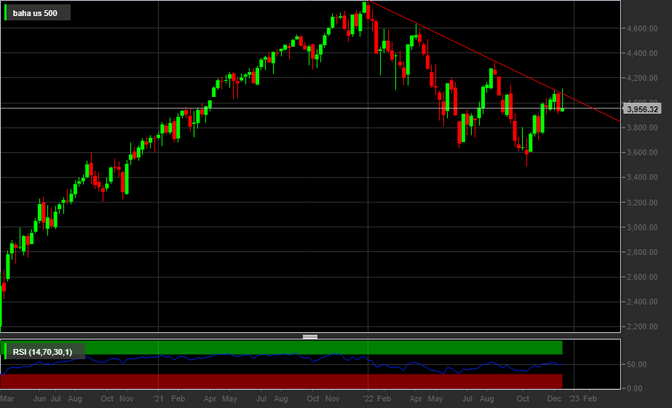 I mercati azionari non hanno esitato a festeggiare di fronte alla notizia legata a un abbassamento del valore dell’IPC di novembre il quale raggiunge il valore di 7,1%. La decisione del FOMC non pare aver impattato eccessivamente sulla volatilità dei mercati azionari statunitensi che si mostrano complessivamente ancora ben proiettati al rialzo da ottobre 2022. L’S&P500 da novembre mantiene un andamento positivo superiore al 5% influenzando positivamente anche gli altri indici azionari. Da un punto di vista tecnico si sta creando un contesto molto interessante.