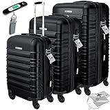 Il set di valigie Kesser è composto di tre valigie di varia grandezza. Tutte e tre sono rigide e molto resistenti. Questo set, in particolare, è nero, elegante e consente di affrontare anche i viaggi molto lunghi.