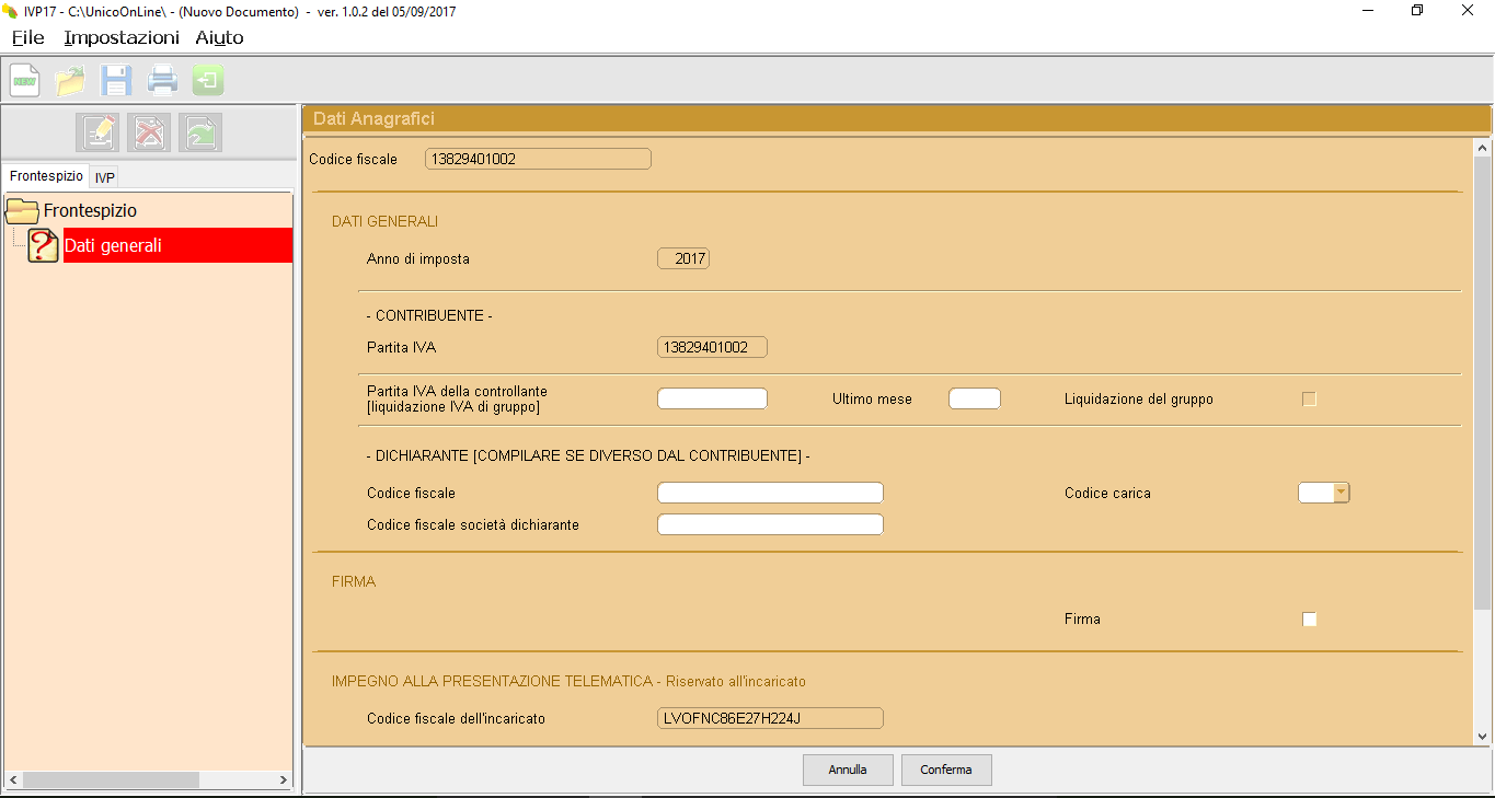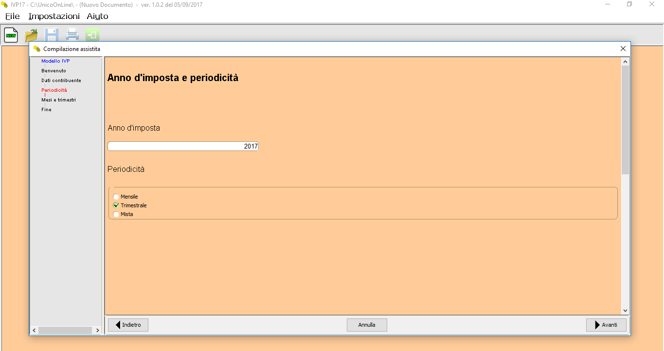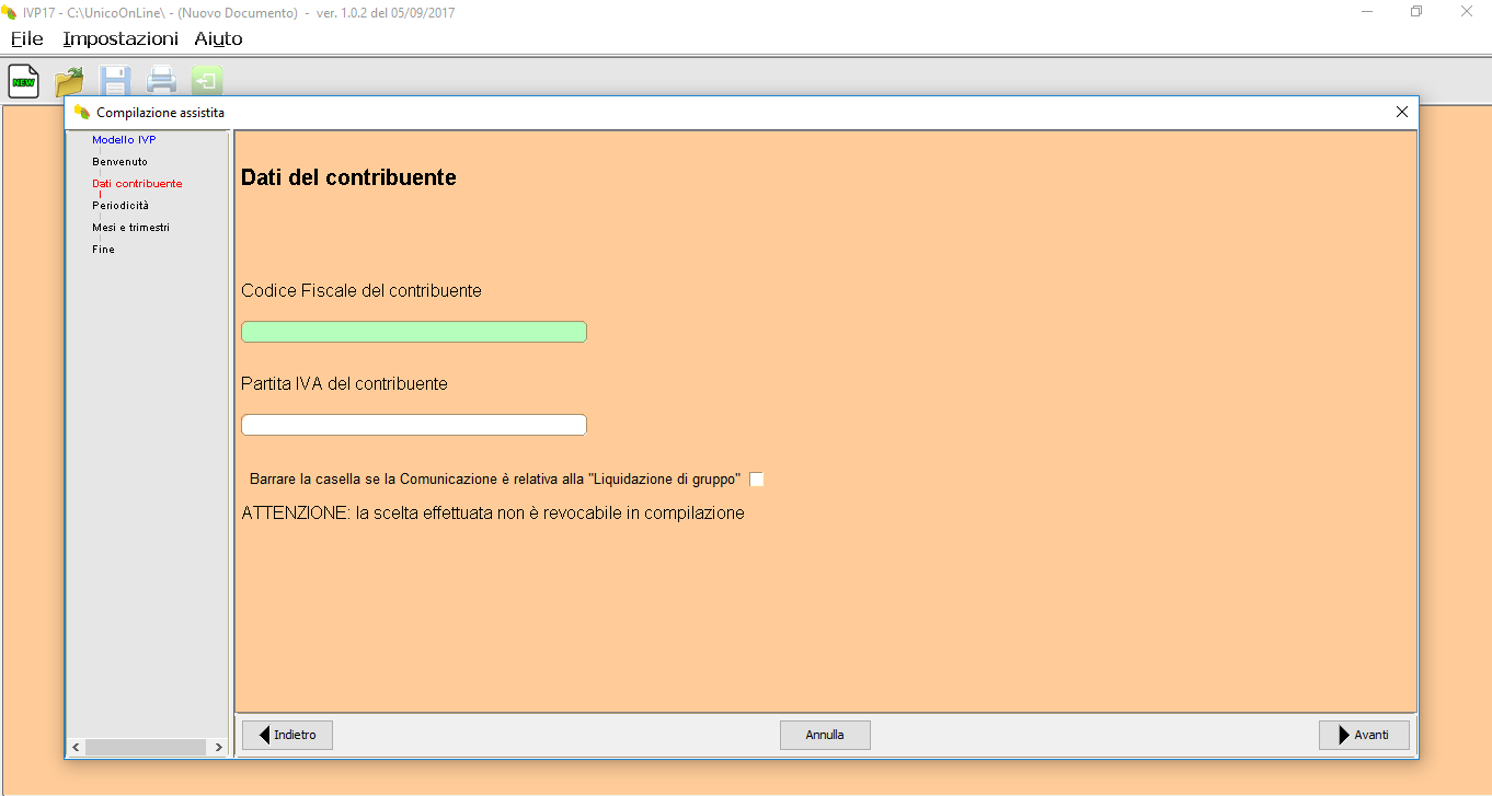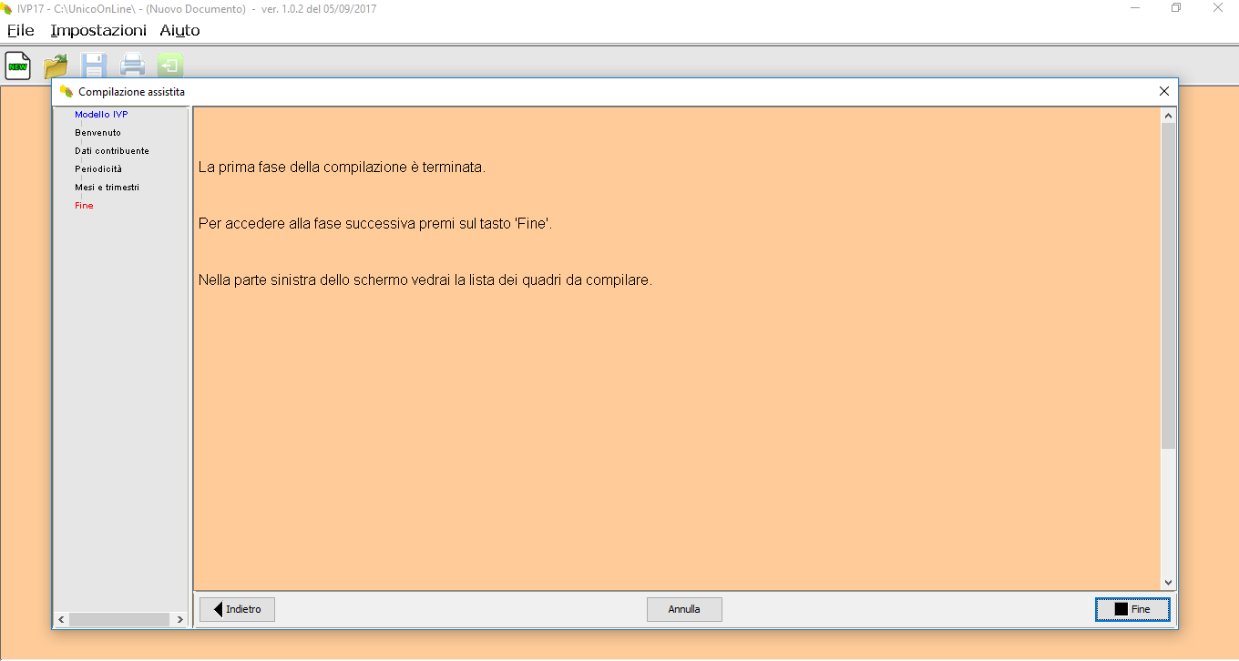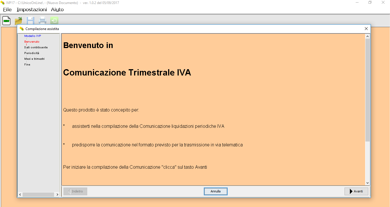 Ecco la schermata iniziale del software di compilazione Modello IVP 2017: