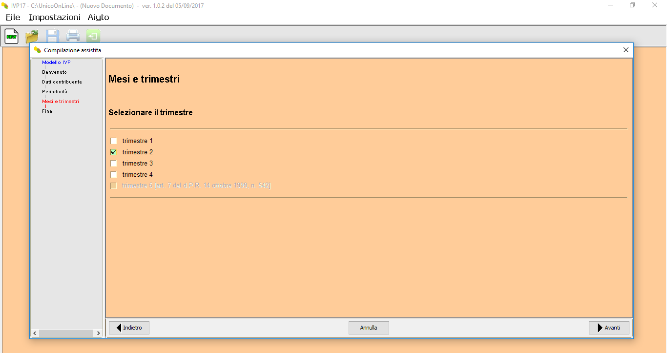 Dopo aver inserito i dati relativi alla periodicità della comunicazione occorrerà indicare il trimestre di riferimento.