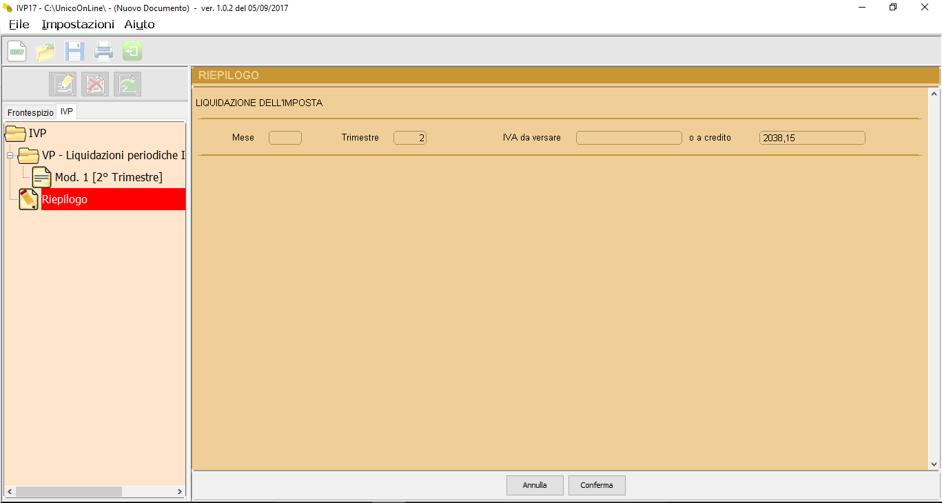 Dopo aver verificato che il risultato del quadro VP coincida con quello risultante dalla contabilità aziendale, allora si potrà cliccare su avanti ed andare al riepilogo. A questo punto cliccando sul tasto conferma si genererà automaticamente il file xml che verrà salvato nell’apposita cartella di destinazione: