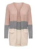 Tra le tendenza di moda per la primavera 2021, nell’armadio di una donna non può mancare cardigan dai colori tenui, reso particolare dall’accostamento di tre blocchi colore.