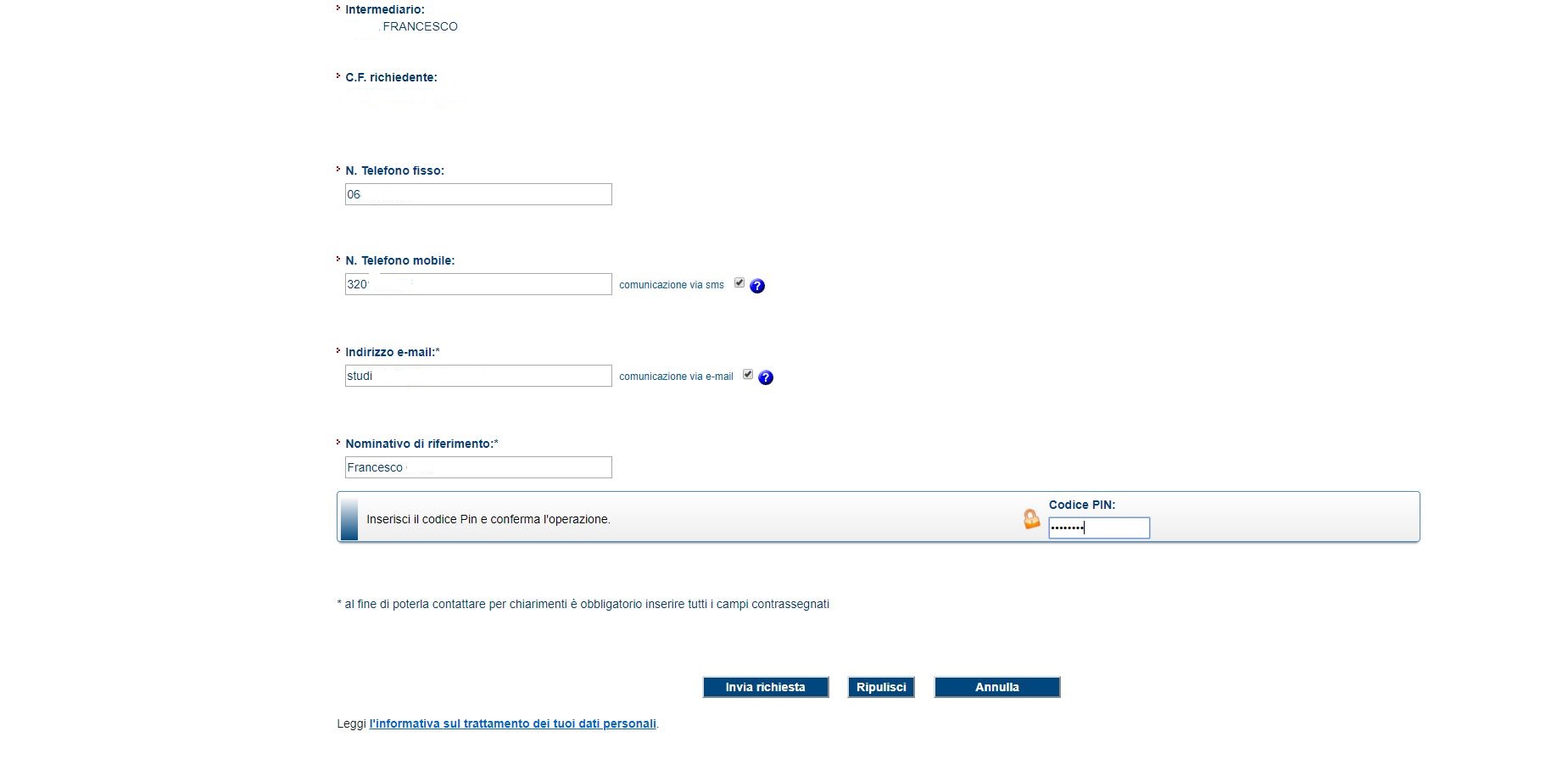 - richiedere la modifica dei dati della delega di pagamento modello F24;
