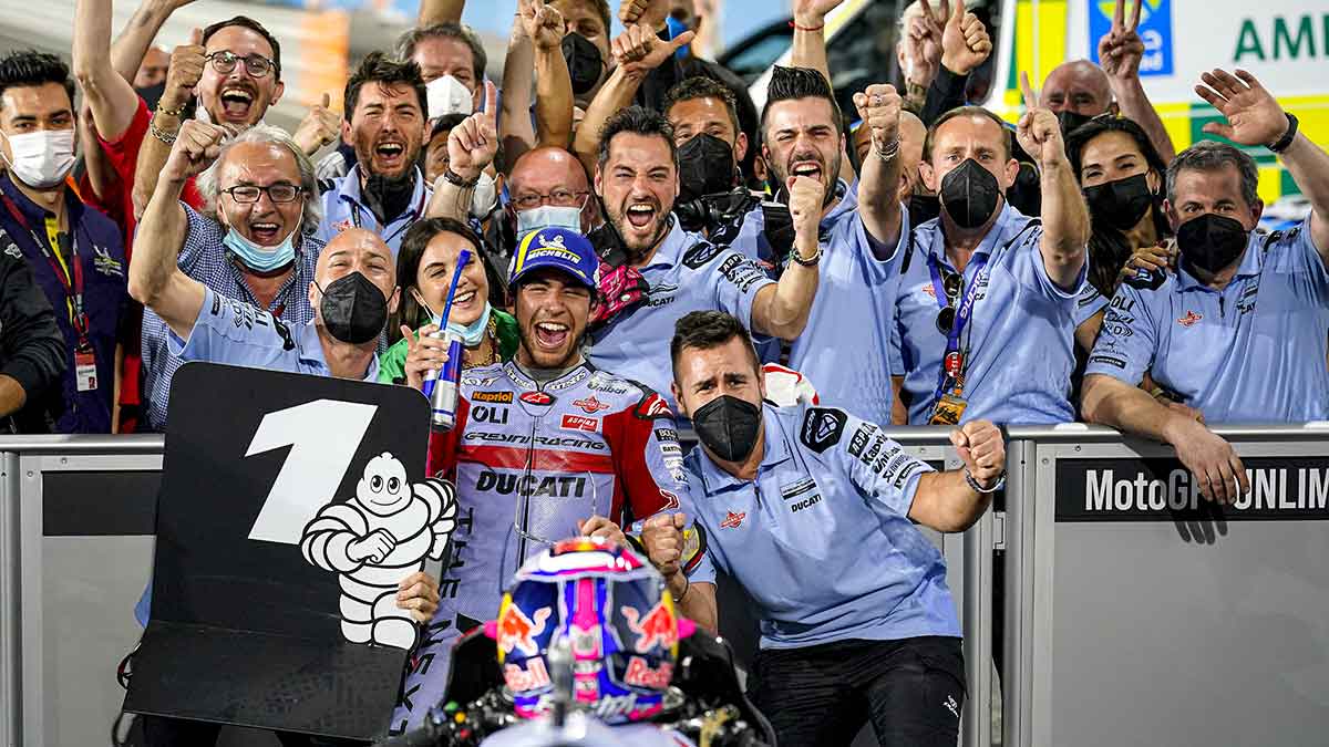 Il Team Gresini Racing conquista il gradino più alto del podio in occasione della prima tappa della stagione 2022 del Campionato Mondiale MotoGP: Enea Bastianini vince in sella alla Ducati GP21.