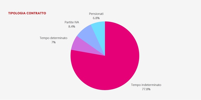 La maggioranza dei richiedenti (77,8%) sono lavoratori a tempo indeterminato, seguiti dalle partite IVA (8,4%), dai lavoratori a tempo determinato (7%) e dai pensionati (6,8%).