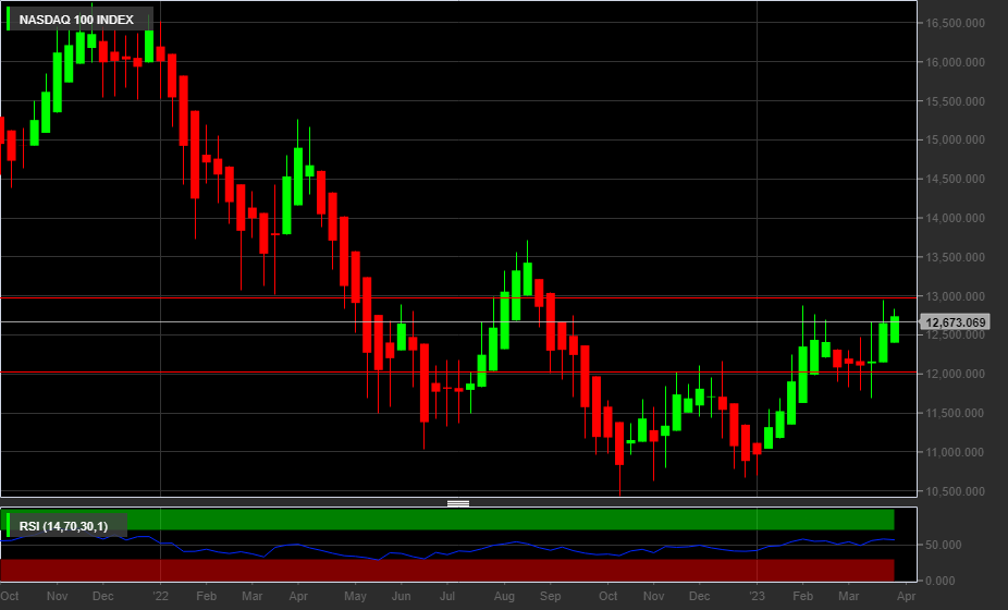 Da un punto di vista tecnico, l’indice ha raggiunto un livello grafico molto interessante da prendere in considerazione dettagliatamente. Il valore del Nasdaq100 si trova nuovamente in prossimità dei 13.000 punti, numerario che a febbraio ha funzionato da resistenza. La rottura di questo livello tecnico potrebbe comportare l’inizio di una nuova stagione di rialzi per l’indice in questione, considerato anche il contesto macroeconomico attuale.
