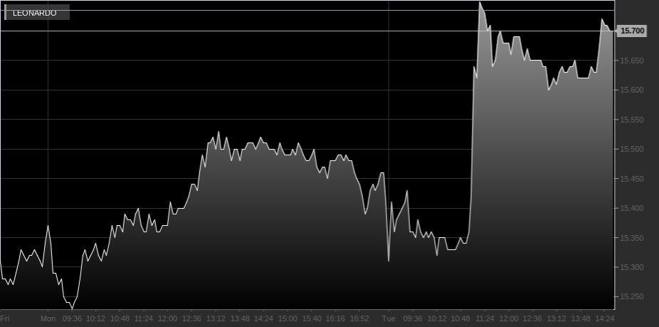 Le dichiarazioni dei vertici aziendali hanno infiammato la quotazione della ex Finmeccanica che è immediatamente decollata, schizzando dai 15,35 euro della mattinata a quota 15,7 euro.