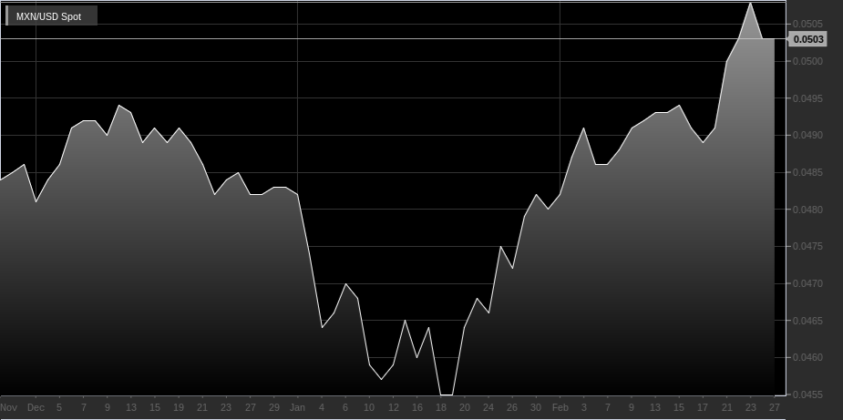 Forex: peso messicano sale nonostante Trump: perché? - Il peso messicano è stato una delle migliori valute del mese di febbraio, il tutto nonostante le continue minacce all’economia del paese da parte del nuovo presidente Trump. Come si spiega tutto questo entusiasmo del peso messicano?
