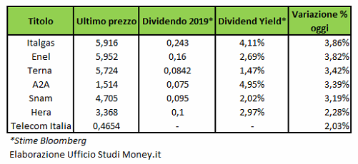 Ad esclusione di Telecom Italia, che non ci si attende paghi il dividendo il prossimo anno, le società del comparto utility quotate sul FTSE Mib offrono un rendimento da dividendo che va dal 2,28% al 3,86%.