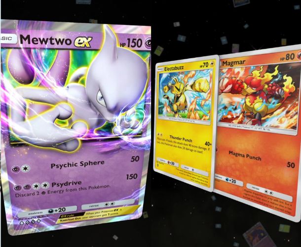 Con le ultime espansioni, sono state lanciate versioni speciali di alcune delle carte più iconiche del gioco. Come per esempio le EX, contrassegnate dalla dicitura sia di fianco al nome del Pokémon nella carta che all’interno della schermata di riepilogo presente nell’apposito menu del deck.