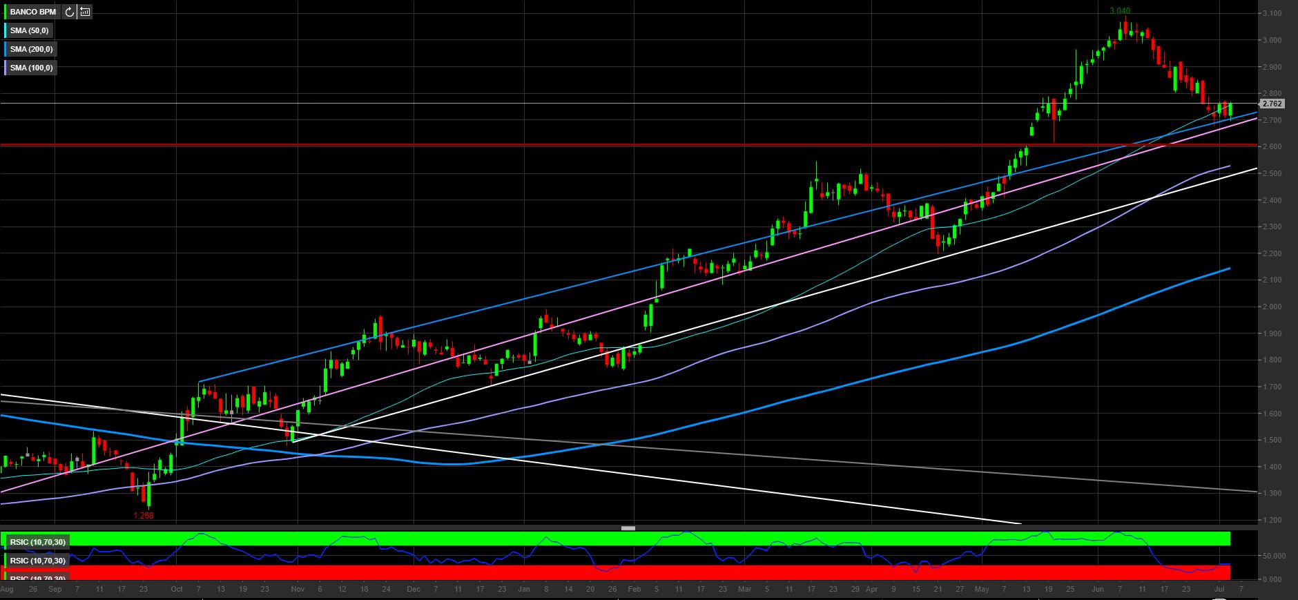 Azioni Banco BPM, grafico giornaliero. Fonte: TeleTrader