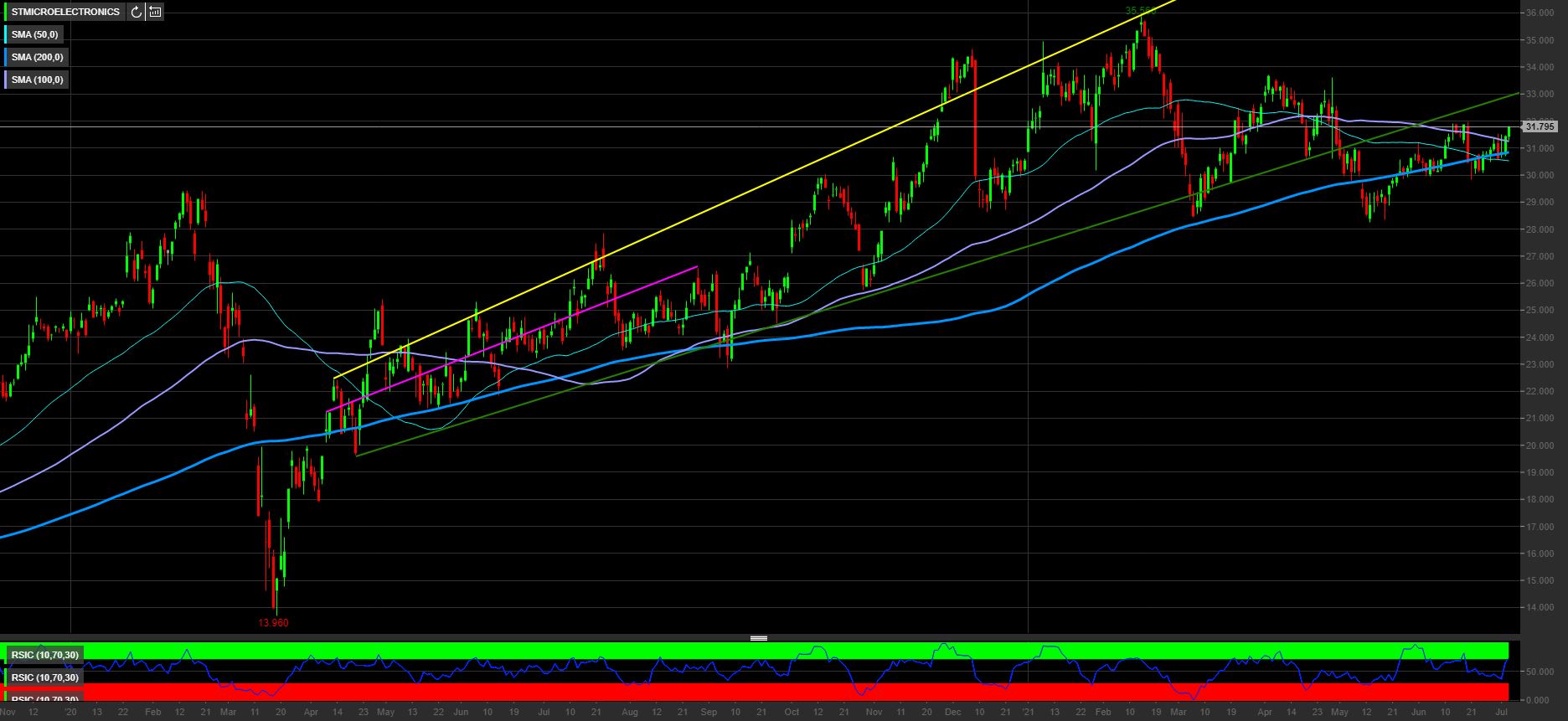- su STMicroelectronics (DE000HV4GWP6) che, nonostante i prezzi siano al di sotto del nostro punto di ingresso, potrebbe recuperare terreno;