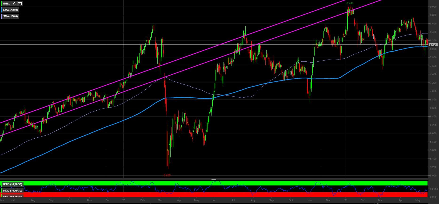 Azioni Enel, grafico giornaliero. Fonte: TeleTrader
