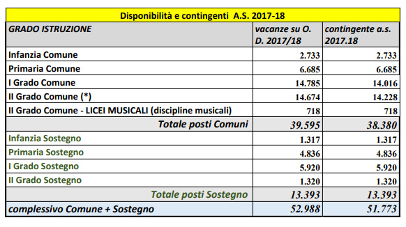 Immissioni in ruolo 2017-2018: il MIUR ha ufficializzato il contingente dei posti disponibili, pubblicando le tabelle con la ripartizione per regione e classe di concorso.