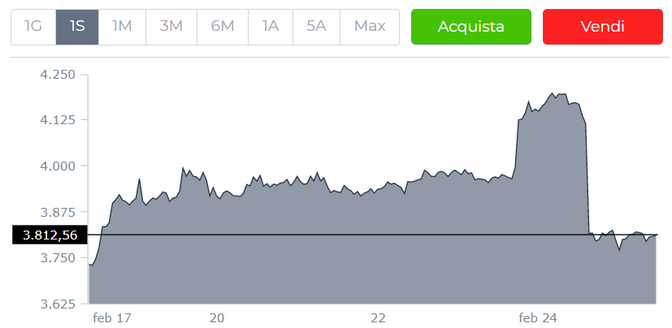 Al momento in cui si scrive, sull’exchange Bitfinex, il prezzo del Bitcoin sta scambiando con un ribasso dell’8,3% su quota $3.877.