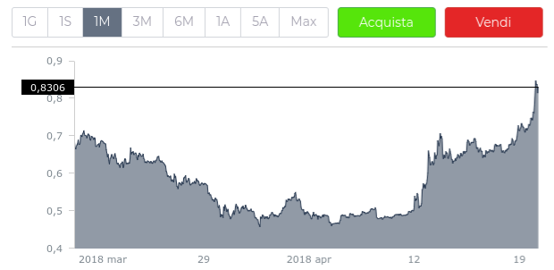 In virtù delle ultime performance XRPUSD ha così messo a segno la terza settimana consecutiva di rialzi, guadagnando circa 80 punti percentuali dai minimi di inizio aprile su quota $0,46.
