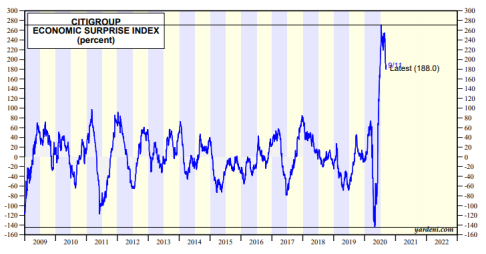 - i dati macroeconomici battono più spesso le attese di mercato (mostrato da un Economic Surprise index in netta risalita rispetto al primo semestre del 2020);