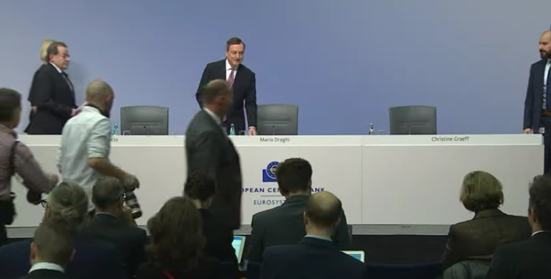 Termina con una puntualità da invidiare la prima conferenza stampa di Draghi del 2018. Arrivederci alla prossima riunione BCE di marzo.