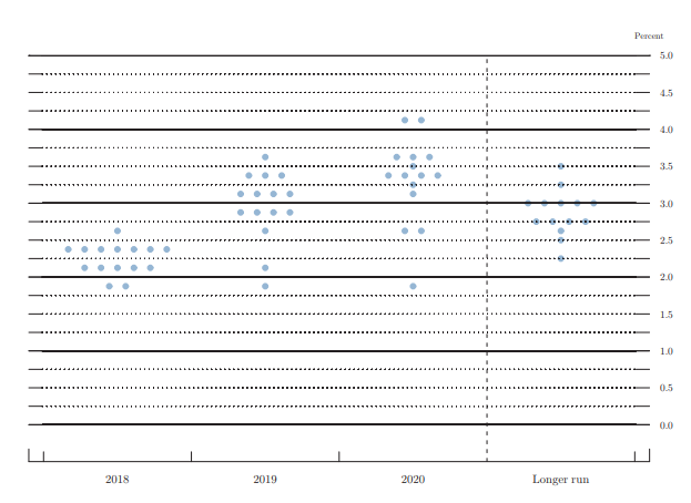 (Il Dot Plot che ha alzato il velo sulle reali intenzioni della Fed: 4 rialzi dei tassi di interesse per l’intero 2018).