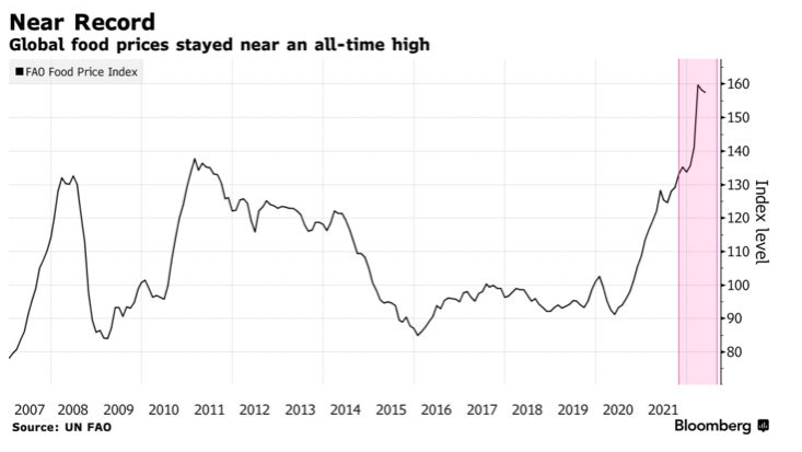 Intanto, i prezzi alimentari globali sono rimasti vicino a un record poiché l’invasione russa dell’Ucraina ha interrotto il commercio, alimentando la fame e aggravando la crisi del costo della vita.