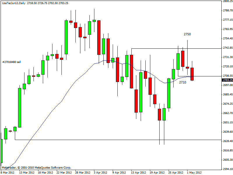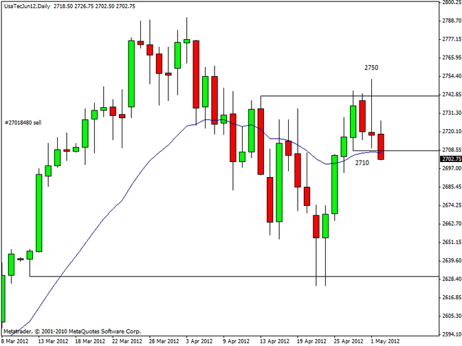 Stamattina sono entrato short sull’indice americano NASDAQ a 2724 con stop a 2750, anticipando il segnale di breakout a 2710 come suggerito già nel report mattutino. Il CFD sull’indice americano è sui minimi intraday di 2702, così ho preso profitto su una parte della posizione short a 2704. Il resto della posizione è in pareggio. Più tardi farò nuovi aggiornamenti sulla mia posizione corta sul Nasdaq.
