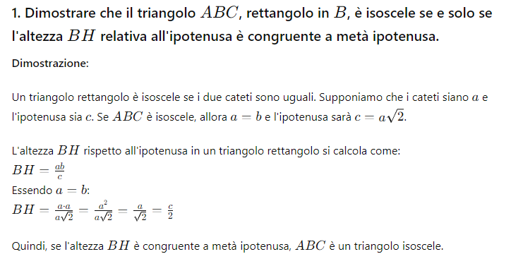 Ecco la soluzione del primo quesito. Non garantiamo che si tratta di una soluzione in linea con il programma delle scuole superiori, in quanto lo abbiamo fatto risolvere all’intelligenza artificiale.