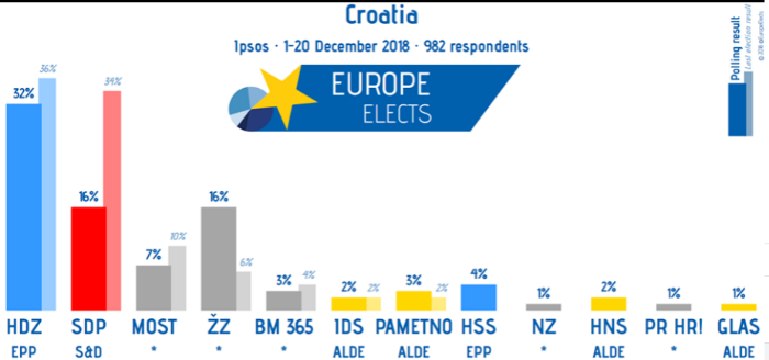 Anche se in calo rispetto alle elezioni parlamentari del 2016, il partito di governo HDZ si confermerebbe sempre saldamente prima forza politica del paese. Rimanendo sempre nell’area di centrodestra, in calo invece vengono dati i liberali di MOST.