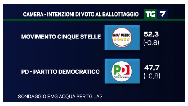 Nel dettaglio, oggi andremo ad analizzare i sondaggi politici di Demopolis, che rilevano una stabilità del Movimento 5 Stelle nonostante i problemi di Virginia Raggi a Roma. Infatti, qualora si votasse oggi con l’Italicum come legge elettorale, il Movimento 5 Stelle riuscirebbe ad arrivare al Governo grazie alla vittoria nel ballottaggio con il Partito Democratico.
